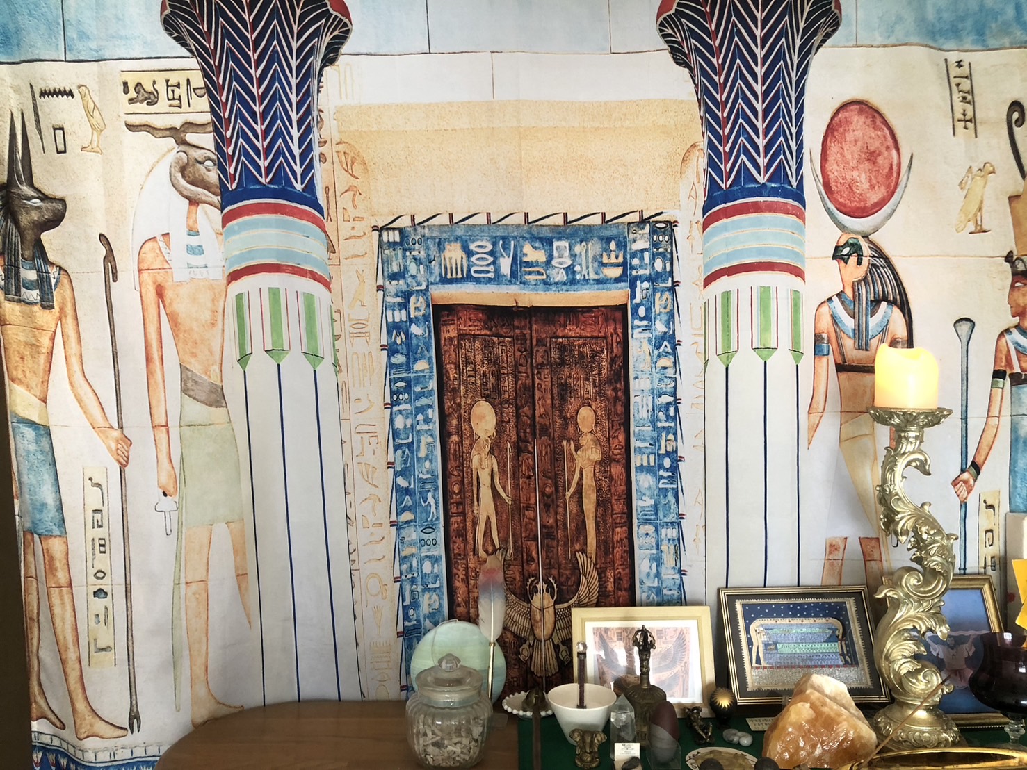 セラピストと縁が深い古代エジプトのタペストリーを飾っています