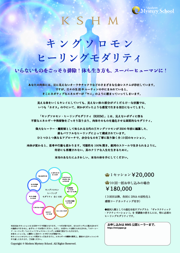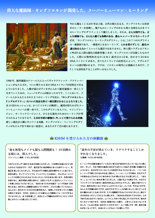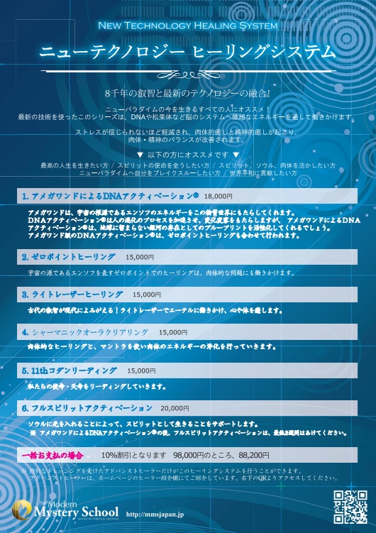 ニューテクノロジーヒーリングシステムのメニューです。それぞれのメニューを単独でも受けていただけます。